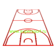 Разметка для игры в баскетбол. Длина и ширина площадки отмеряются от внутреннего края линий, которые её ограничивают.