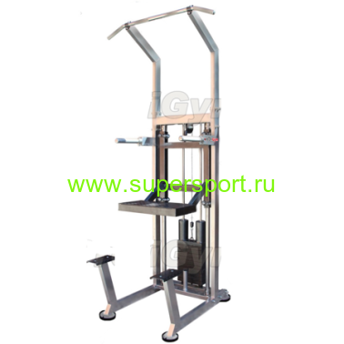 Тренажер Гравитрон употребляется для отжиманий на брусьях и подтягиваний на турнике (широким или узким хватом). Подвижная платформа станка установлена на 16-ти подшипниках качения. Данное оборудование компенсирует вес тренирующегося спортсмена, помогая выполнять упражнение. Грузовой стек станка осуществляет функцию противовеса собственной массе атлета. Нагрузочные плитки обрезиненные, направляющие покрыты составом из хрома, что позволяет станку действовать бесшумно.