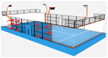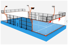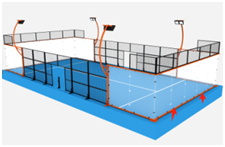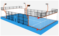 Освещение падел-корта обеспечивает оптимальную освещенность и равномерность по всем игровым зонам. От сетки до зон доступа, фона, боковых линий и зон высоких мячей наше решение по освещению устраняет блики и тени во время игры, предоставляя игрокам хорошую видимость и качество игры. 8 светильников мощностью 200Вт с LED-подсветкой адаптированы к широкому диапазону напряжения от 90 до 240В, с защитой IP65, могут использоваться во всех странах. Стойки освещения крепятся и фиксируются к конструкции корта, доступны различные формы на выбор.