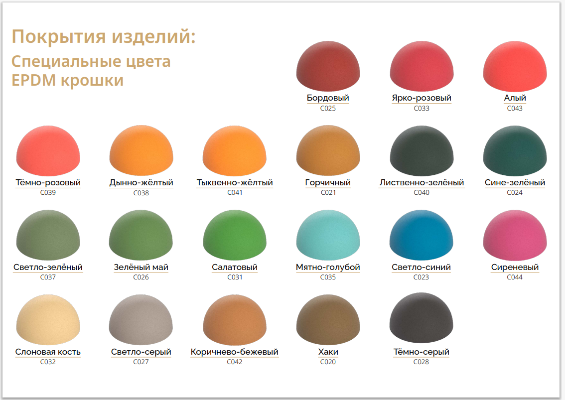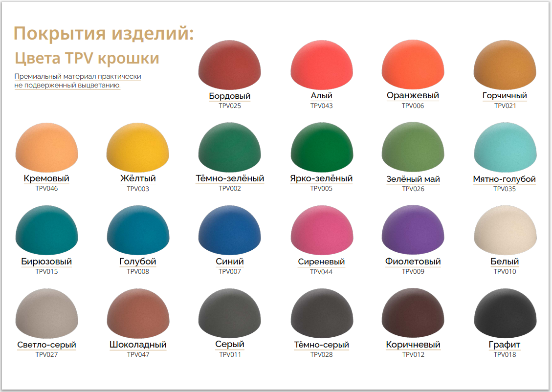 • Изделие из TPV крошки на алифатическом нежелтеющем связующем +10% к цене, стандартные цвета: